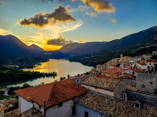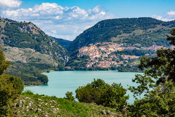 Splende il sole in questo primo fine settimana di settembre sul borgo di Barrea che si specchia nelle verdi acque dell'ominimo lago; siamo nel cuore del Parco Nazionale d'Abruzzo, Lazio e Molise, pronti ad una lunga ma non difficile escursione lungo le sponde del suddetto lago.