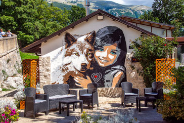 Pausa pranzo al Bar del Lupo, situato fuori dal centro storico di Civitella, a ridosso dell'area faunistica del Lupo, dove sono ospitati alcuni esemplari di lupo che per diversi motivi non possono essere reinseriti nell'ambiente.
