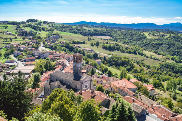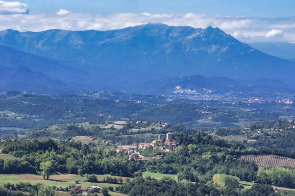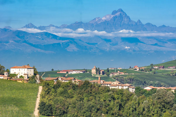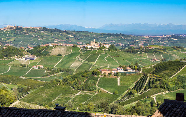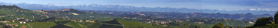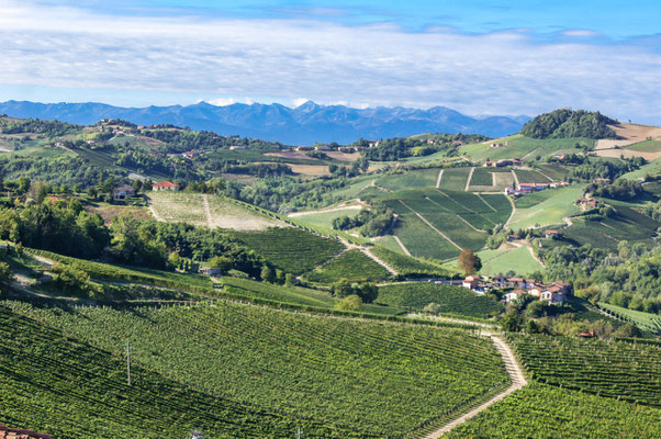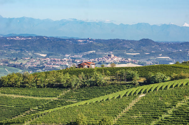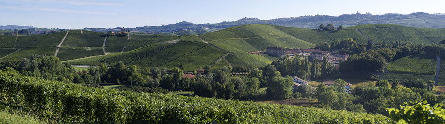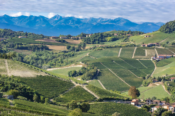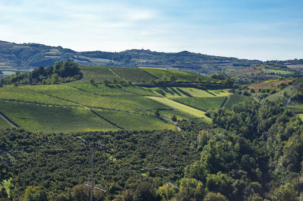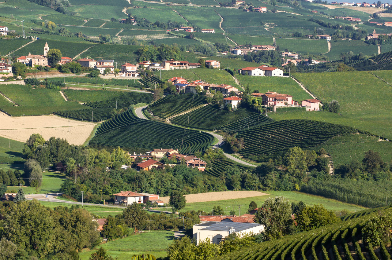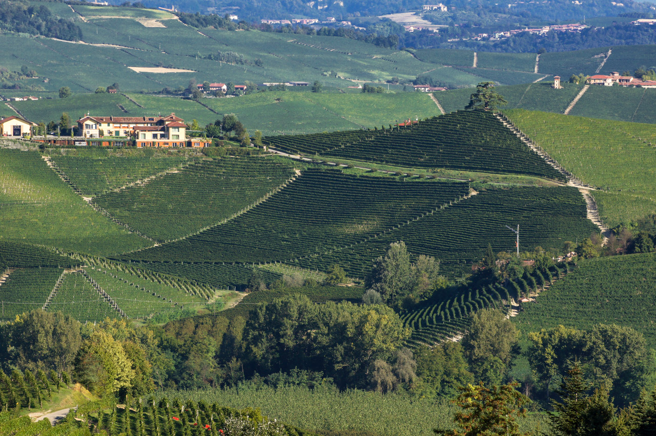 Colline verdi e filari, in ogni direzione lo sguardo ondeggia sulle dolci irregolarità, solo le aspre montagne delimitano all'orizzonte quello che altrimenti potrebbe sembrare un infinito mare.