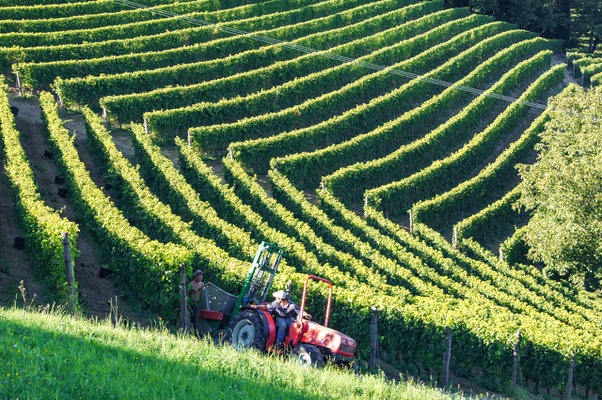 Ondeggiare sulle strade che carezzano le colline del vino tra le più famose al mondo, assaporando le ultime settimane di una estate ancora calda e generosa, mentre i trattori sfilano in mezzo ai filari, raccogliendo i frutti di un lungo e faticoso lavoro che si trasformerà in nettare divino. Meraviglia.