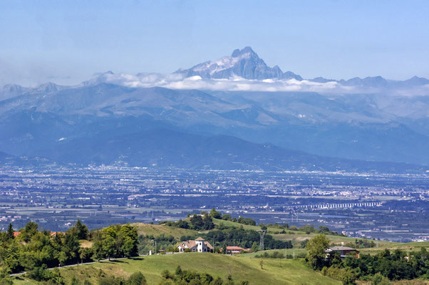 Nonostante il periodo estivo l'aria risulta insolitamente tersa e le cime delle Alpi fanno da cornice ad un quadro esaltante.