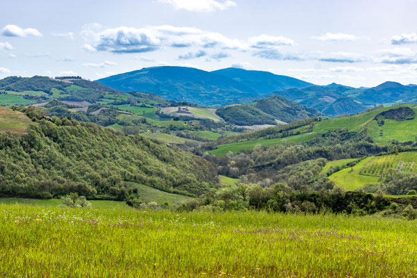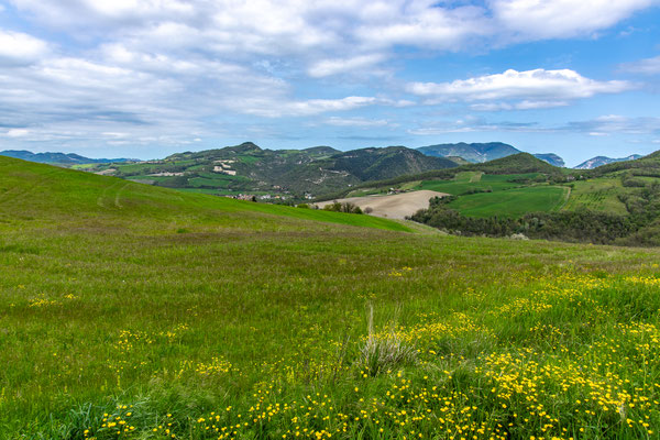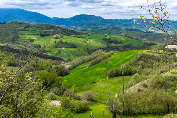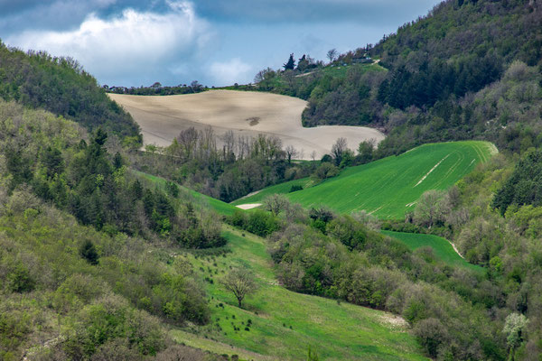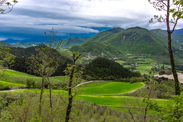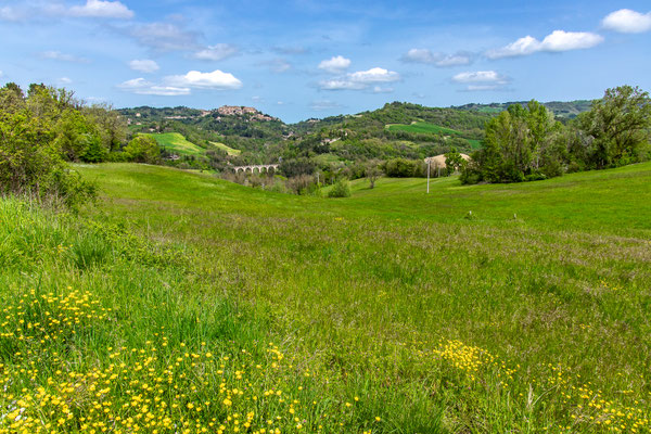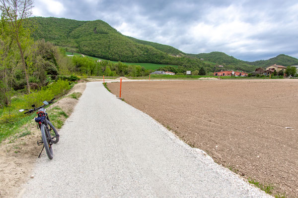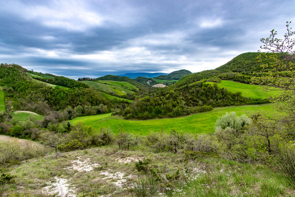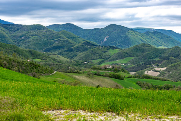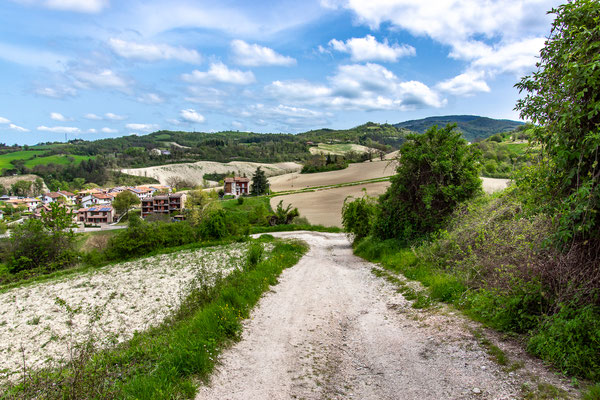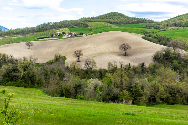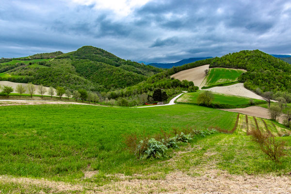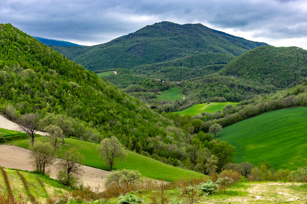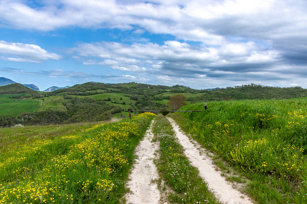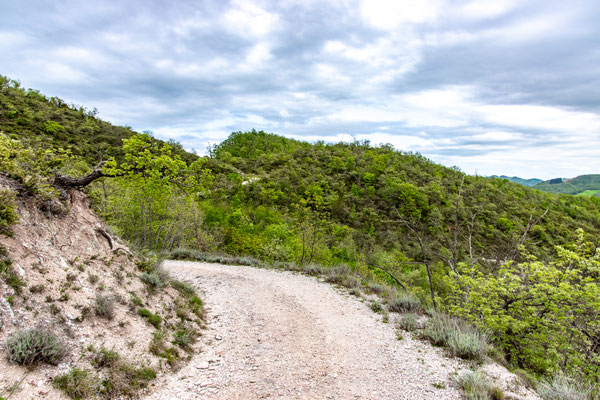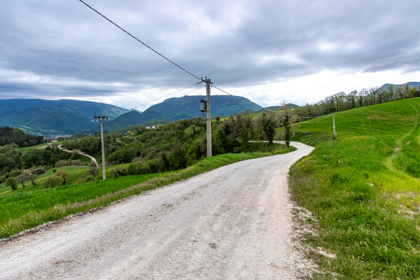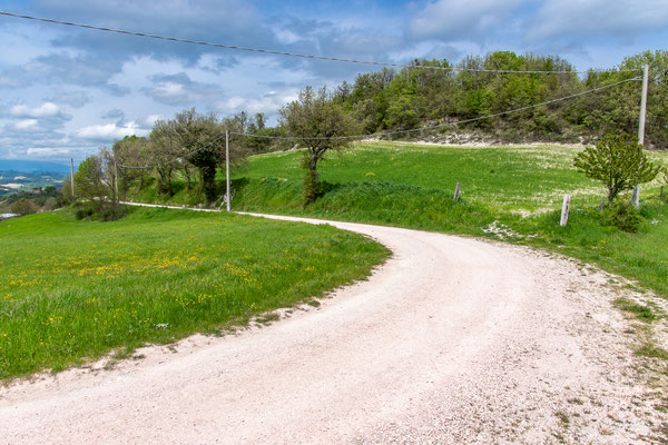 Decisamente più rilassante il saliscendi collinare che si svolge su strade secondarie asfaltate con traffico scarso, per non dire nullo, che ci porta fino a Fermignano.