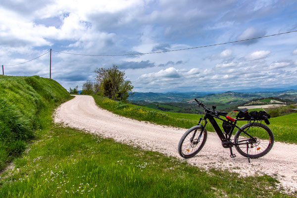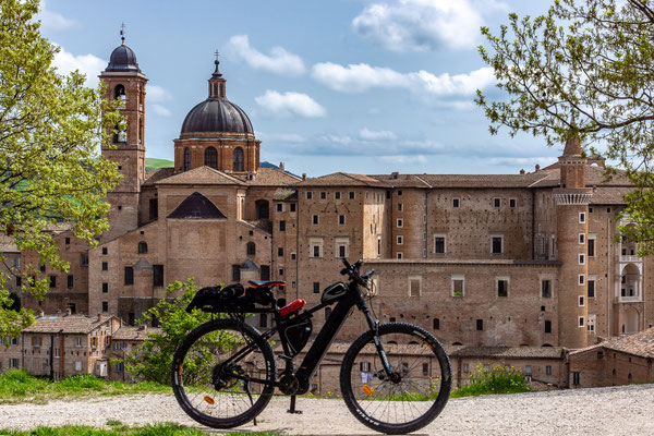 Escursione cicloturistica sulle colline delle Marche che contraddistinguono uno dei territori storicamente più celebri e suggestivi della regione, quello del Montefeltro, dominio di uno delle più rinomate figure rinascimentali: Federico da Montefeltro, duca di Urbino. Un itinerario che prende il via dalla città di Urbania per poi raggiungere le meravigliosa (e affollata) Urbino; da qui proseguiremo per il borgo di Fermignano ed il suo ponte Romano, celebre per essere stato il teatro della sconfitta di Asdrubale ed il suo esercito di cartaginesi ad opera dell'esercito romano.