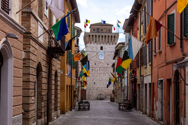 Affidata a maestranze bolognesi, la cittadina assunse una fisionomia urbana caratterizzata da eleganti portici, guadagnandosi l'appellativo di "Casteldurante" in onore del suo fondatore.