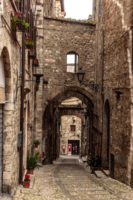 Raggiungere la piazza arrivando da Porta sant’Antonio, regala il primo assaggio di un borgo dove passeggiare per le stradine acciottolate permette di respirare un’atmosfera d’altri tempi, con case in pietra, archi medievali e piccole piazze che si aprono su panorami suggestivi e una tranquillità che solo un luogo dove non è fisicamente possibile utilizzare mezzi a motore, è in grado di regalare.