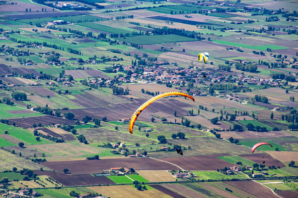 5 i punti di decollo e due quelli dedicati all'atterraggio serviti da bus e navette; con i suoi 1290 metri di altezza e le condizioni atmosferiche spesso favorevoli, il Monte Subasio è in grado di regalare emozioni davvero uniche agli appassionati del volo.