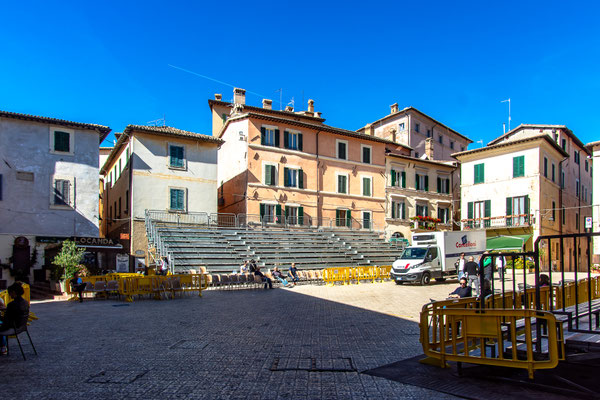 Un contesto quello offerto da Trevi ancora verace, con le botteghe affiancate da trattorie ed osterie che, almeno sembra, ancora vivono della loro genuinità, e la popolazione che anima il frresco mattino del centro storico che sis prepara alla sagra annuale.
