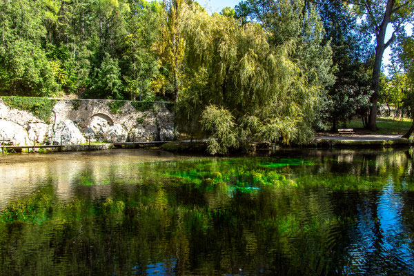 Un suggestivo specchio d’acqua dal perimetro di circa 400 metri che avvolgono una superficie di diecimila metri quadri nella quale si alimenta un microcosmo straordinario; muschi, fanerogame, equiseti palustri, mestolacce, brascenie increspate, gamberaje maggiori, e nasturzio acquatico sono solo alcuni dei gioielli che tappezzano il fondale che si ammira nel verde smeraldo delle trasparenti acque; il tutto incorniciato dalle maestose chiome degli alberi che dalle rive si protendono verso il lago, dal pioppo cipressino ai malinconici salici piangenti diffusi grazie alla moda parigina dell’epoca alimentata dalla leggenda che vedeva una di queste piante ombreggiare la tomba di Napoleone a Sant'Elena.