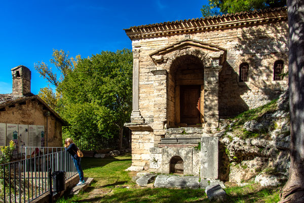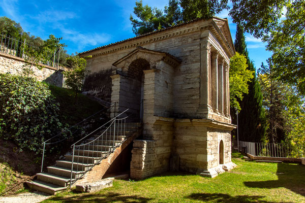 Edificato in prossimità delle mitiche Fonti del Clitunno (che visiteremo subito dopo), probabilmente sulle spoglie del precedente edificio romano, in una sorta di continuità storica che consegna questa meraviglia di diritto tra le protettive braccia dell’UNESCO; dalla grandezza di Roma alla spiritualità medievale, un luogo in cui l'arte, la fede e la storia si integrano in un silenzioso e perpetuo dialogo.