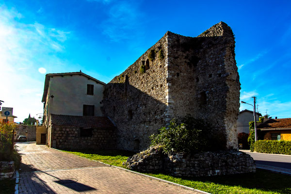 Il perimetro murario, sviluppato per circa cinquecento metri, era in origine sormontato da merlatura guelfa e protetto da profondi fossati; resti di cannoniere, beccatelli in pietra, nonché archi e finestre di abitazioni un tempo addossate alle mura testimoniano la storicità del luogo, dove anche l’abitato conserva l’antico impianto trecentesco